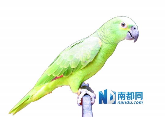 黒\嘴、绿羽毛、圆眼睛……见到只外号“双黄头”的鹦鹉,只见它乖巧地站在主人张先生的肩膀上,用又萌又呆的表情高兴地叫他“老板,你好”,并发出“哈哈”大笑声,像一个性格活泼的小孩子。