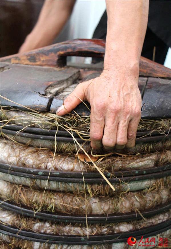 手工榨油程序比较复杂,基本流程是:首先将芝麻籽炒熟,待冷却后用粉碎机将炒熟的芝麻籽粉碎成粉状;然后将芝麻粉放入木甑蒸熟,出甑后,将原料倒入用龙须草垫底的圆形铁箍中,制成榨油用的芝麻饼;最后将成块芝麻饼整齐地竖放进木榨的榨槽内,用木枋挤紧,加入楔子后,用悬挂撞锤猛击楔子,芝麻饼在重力挤压下,就会从榨槽的槽眼流出芝麻油。手工榨油虽然日加工量不足现代机械加工量的五分之一,但是其生产的芝麻油原汁原味、营养丰富,而深受消费者青睐。(曹忠宏)
