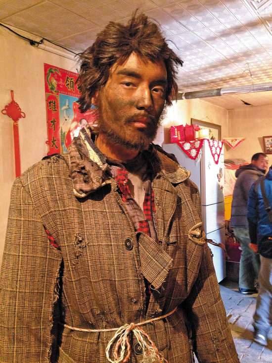 这让拍摄过程变得特别诡异。“每天我把自己化得妈都不认识,然后一个人坐在路边。我不知道镜头什么时候会扫到我,更不知道当地的村民什么时候可能跑来跟我互动。”有一次,天气很冷,而他又坐在路边太久,有个当地的老太太看不过去,还过来同情地掰了一半玉米给他。不少小孩儿对这个最近莫名其妙老在村里晃的流浪汉特别好奇,但每次他一走近,孩子们又会害怕地一哄而散。