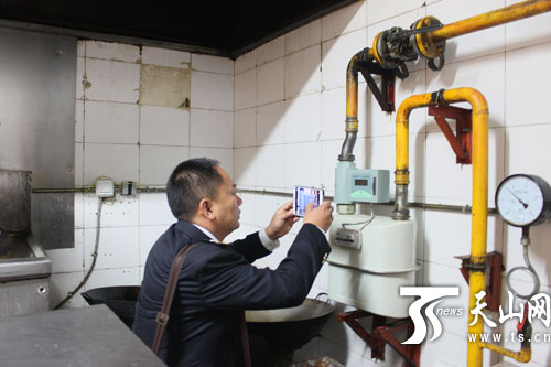 乌鲁木齐市质监局工作人员现场检查用户单位燃气表。