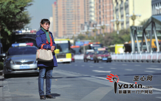10月14日13时,准备到乌鲁木齐市友好南路派出所询问案件进展情况的洪春英站在路边,神情落寞。