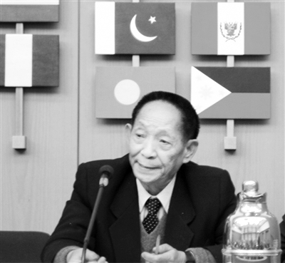 10月10日,袁隆平在中国超级稻第四期研究进展新闻发布会上回答记者提问。