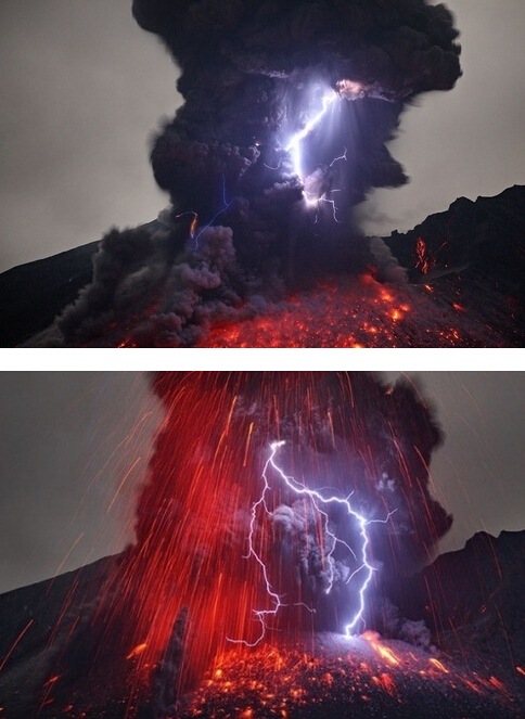 火山闪电:据悉,火山喷发时抛出的带正电颗粒在空气中遇到带负电的颗粒,从而形成了壮丽的火山闪电。