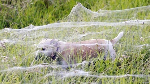 蛛网田野:蛛网田野位于澳大利亚。据了解,上千万的蜘蛛因逃避洪水而迁徙至此,因此在田野上织成了成千上万张蛛网。