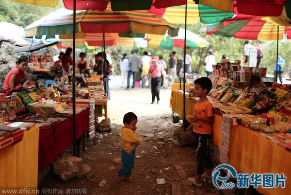 每天,游客都从这个热闹的小集市里“淘宝”,满载而归。在此起彼伏的叫卖声里,还能听到清脆的童声。除妇女摊主外,一些年纪不大的女孩和男孩也夹杂其中。