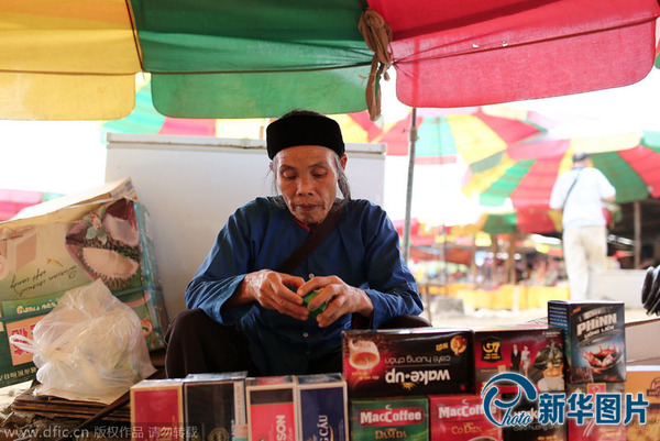 每天,游客都从这个热闹的小集市里“淘宝”,满载而归。在此起彼伏的叫卖声里,还能听到清脆的童声。除妇女摊主外,一些年纪不大的女孩和男孩也夹杂其中。