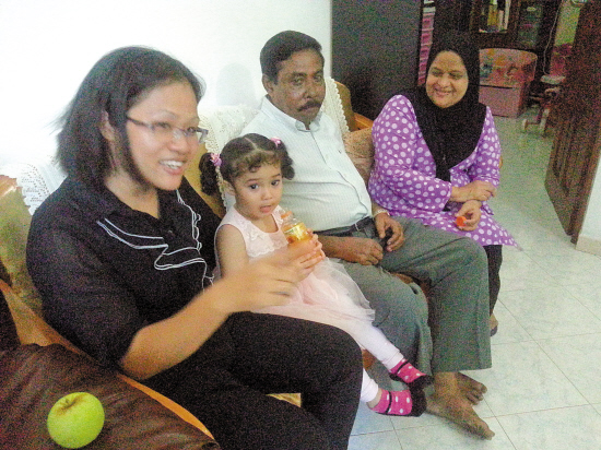 30多岁的彩珍外形丰润,坐在沙发上,依偎着丈夫,抱着女儿萨拉,一脸幸福。她说自己老家在广州天河区元岗村,与来自马尔代夫的丈夫在新加坡求学时相识相爱,后来跟随丈夫在马尔代夫安家,现在有了一个非常可爱的混血女儿。