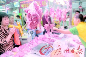 昨日在友谊市场,陈生的“壹号土猪”档口排满了买肉的市民,市民王阿姨表示:“一早就听过‘壹号土猪’,今天特地过来买点尝尝。”