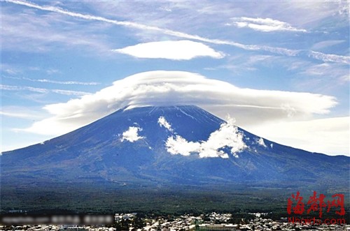 富士山戴“山帽云”