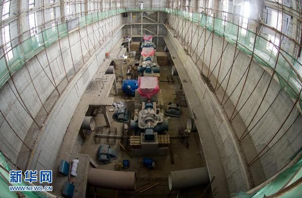 10月23日,施工人员在南水北调来水调入密云水库调蓄工程的西台上泵站施工。南水北调中线工程来水将于近日进京,除通过北京市供水管网进入千家万户,富余的水会从团城湖沿京密引水渠输入密云水库。目前,南水北调来水调入密云水库调蓄工程正在紧张施工中,预计将于年底完成主体工程,明年进行联调联试。南水北调来水调入密云水库调蓄工程现场项目部技术组组长周鑫介绍说,此工程全长103公里,来水经过9级泵站加压“攀升”100多米后进入密云水库,回补水源。新华社记者 罗晓光 摄