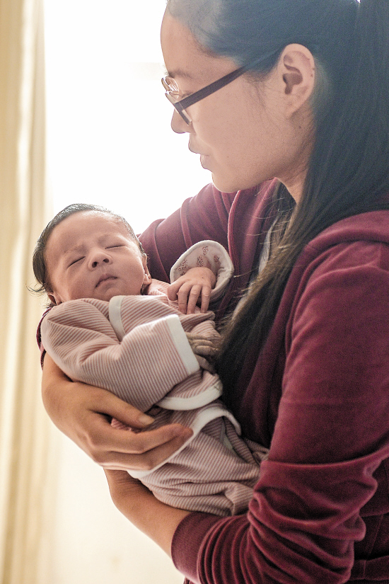 “孩子一出生就呼吸很吃力且带有吹哨声。呼吸时,整个胸部和喉部都会凹陷下去,还会出现窒息现象,额头和脸都发黑了。”刘先生说。