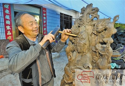 “原来我只是一个普通的小木匠,幸好被师傅相中了,才有了和观音寨木雕的缘分。”头发花白的周孔章说,30多年前,观音寨的民间木雕艺人杨永禄,觉得他聪明,就收他为徒。