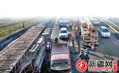 乌鲁木齐:拉煤车侧翻 车辆排队3公里