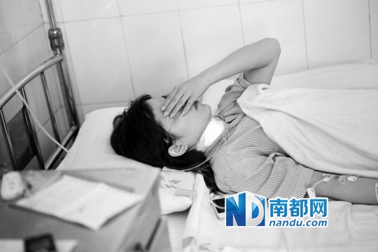 东莞中堂医院,广西女子方英在等公交时被割喉,无生命危险。南都记者 方光明 摄