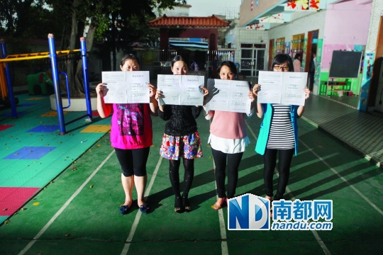 11月5日下午,南江幼儿园几名老师向记者展示她们的合同。