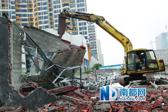 昨日,空港大道东侧一处违法建设被强制拆除。南都记者 李向新 摄