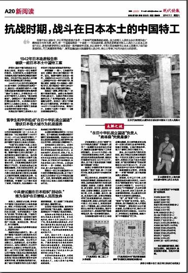 本文摘自:《现代快报》2014年11月1日A20版,作者:萨苏,原题为:《抗战时期,战斗在日本本土的中国特工》