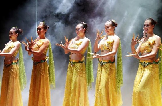 10月29日,在缅甸仰光,云南艺术团演员表演节目。“文化中国七彩云南”缅甸行文艺晚会29日在仰光国家剧场举行,受到缅甸各界观众的热烈欢迎。 >>> 详细