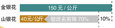 目前,南北金银花价格仍是天壤之别。北方金银花价格为150元/公斤,而山银花价格只有40元/公斤,较改名之前下降了70%。而在改名之前,金银花和山银花之间价格顶多相差10%。![]()