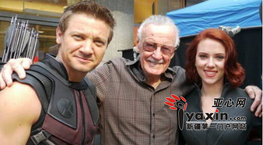 斯坦·李(中)与鹰眼和黑寡妇合影,老爷子在每部漫威电影中都打过酱油,你可以找找看。图/豆瓣