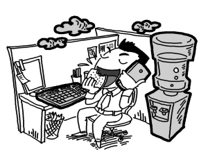 虽然办公室每天都换饮用水的桶,可机器内部、出水口的清洗都被忽视,长时间下来会堆积水垢。其中隐藏着副流感病毒,一旦发病,可能导致重感冒。