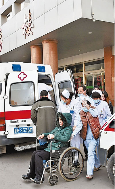 11月17日,山东寿光火灾事故部分伤员从东营市第二人民医院转院至寿光市人民医院继续接受治疗。