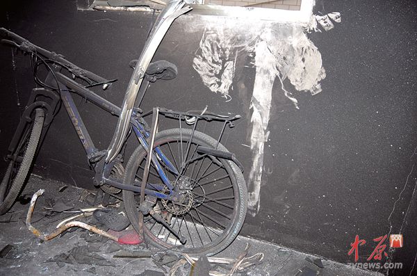 下午2时许,郑州晚报找到了位于高皇寨村内西北的失火高楼,该楼南北两个出口的警戒线仍未撤去,高楼内部多个楼层留下了黑色的烟熏痕迹,黑色的痕迹更是从二楼楼道拐角的窗户蹿至外墙并向上延伸。北侧出口处留下了3辆电动车及多辆自行车残骸,一楼墙壁则有多块瓷砖因火脱落,三楼拐角处的一个自行车已被烧变形。