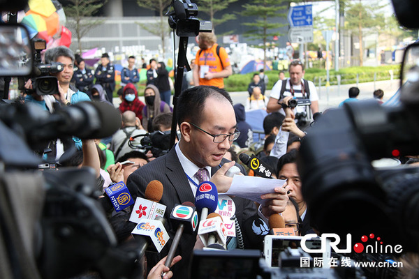 国际在线消息(记者 丁一鸣):香港违法“占领中环”持续52天后,示威者仍然占据交通要道。在法庭执达主任、警方协助下,香港高等法院就金钟中信大厦再次颁下的禁制令18日开始执行。