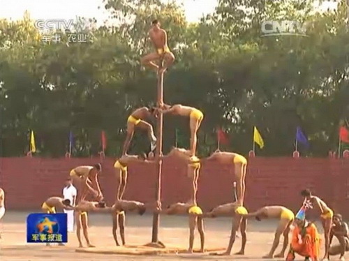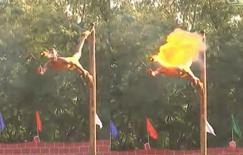 中印陆军反恐联训:印军表演裸身爬杆喷火绝技(资料图)