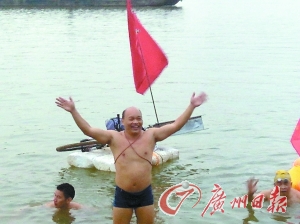 广州日报肇庆讯 (记者于敢勇 通讯员范桂玲摄影报道)肇庆的梁雄(阿雄)在西江南岸工作,从2011年起,已经连续三年用横渡西江的方式,下班游回西江北岸端州的家。他的独特爱好还吸引了别人的效仿。