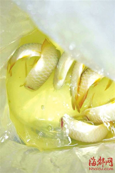 检验检疫部门随后向企业出具检疫证书,企业可根据证书向新加坡发货方协商索赔。据介绍,这407尾金龙鱼价值近2万元,原想在福州“安家”一阵子后再出售,没想到半路夭折。最后,检验检疫部门对金龙鱼以及包装袋、包装用水进行消毒,并深埋。