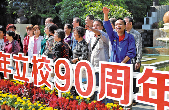 比起85届校友的浩浩荡荡,57届的校友也不遑多让,一行耄耋老人在路上走着聊着,赢得路人的注目礼。“我们这次回来的同学有10个,趁着90周年校庆好好聚一聚。”说起学校,57届校友罗女士显得特别兴奋,“校庆活动办得很有特色,让我有种回到学生时代的感觉。从门口走进来就听到学生说‘欢迎回家’,感觉特别温暖,学校没有忘记我们。这么多年,我以作为省实学子为荣。”