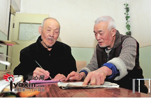 亚心网讯(记者 肖琳) “爸, 人家都夸你字写得好, 是个书法家, 快写几个给他们看看……” 11月26日, 在乌市南昌北路昊天公司家属院, 王建俊面带笑容, 把笔递到岳父刘荫贵手中。听王建俊这么一说, 本来背着手不愿写字的刘荫贵像孩子一样笑了起来, 接过了王建俊手中的铅笔。