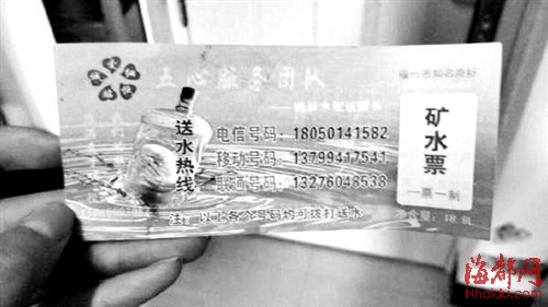 原标题:“闽一”桶装水入校推销水票 咋不送水