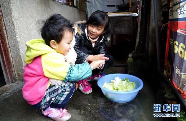 11月29日,徐娜一边洗菜一边照顾妹妹徐婷。 8岁的徐娜是江西省修水县的一名小学生。徐娜的母亲在3年前患上尿毒症,求医花光了家中所有积蓄。原本小康的四口之家如今只能蜗居在县城一处月租200元的旧楼里,靠父亲打工和社会爱心人士救助维持生活。为帮父亲减轻负担,身高1米2、体重不到40斤的小徐娜几乎“承包”了所有家务。新华社记者陈子夏摄