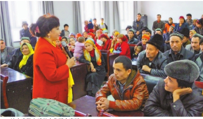 编者的话:她用通俗易懂的语言、深入浅出的道理、生动鲜活的事例,向群众宣传党的政策、法律法规,揭批“三股势力”的反动本质和丑恶面目,如春风化雨般让倾听宣讲者深刻理解“民族团结是各族人民的生命线”。