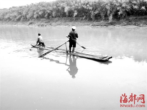 昨天上午11时许,海都记者赶到事发现场。一艘竹筏正在河面上搜寻。搜救人员介绍,河面宽约50米,黄伟良落水地点曾是采砂点,水很深,四五米长的竹竿插下去,都没顶了。
