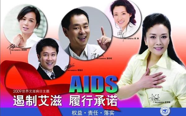 2009年,彭丽媛与濮存昕等几位明星拍摄了艾滋病公益宣传广告。