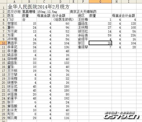 另一张图片为金华人民医院今年2月的统方,药物同浦江县人民医院,共涉及33名门诊及病区医生,金额从最少4元到最高236元不等。