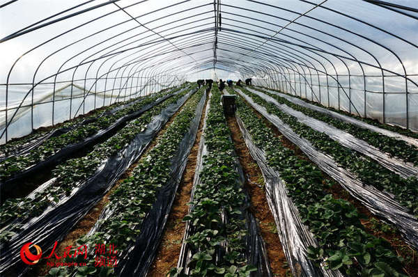 人民网郧县12月5日电 4日,湖北郧县青曲镇伟超农场草莓采摘园的员工为反季草莓拨除杂草。今年冬天该农场栽种的200亩大棚反季草莓长势喜人,农场采用日光温室大棚栽培,实行标准化生产。草莓采果期为12月中旬至次年3月,实现反季节生产,在春节前后上市。(王燕)