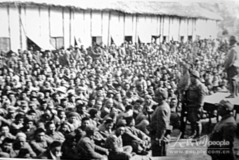 侵华日军在把中国战俘押送日本国服苦役前训话,来源:人民网