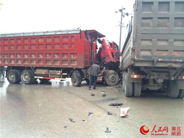 湖北阳新两重型货车迎面相撞 驾驶员1死1伤