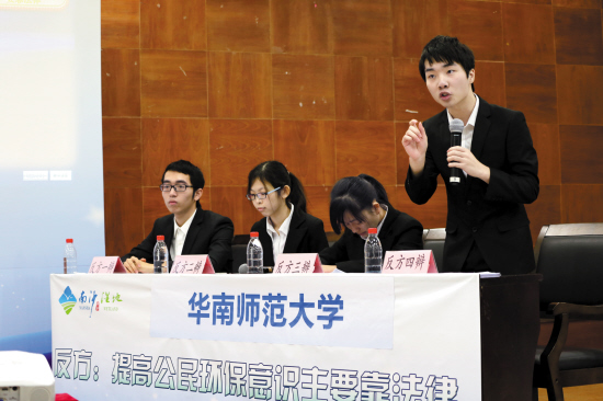 由羊城晚报、广州广播电视台·掌中广视联合主办,广州南沙湿地旅游发展有限公司独家冠名支持,广东丹姿集团有限公司协办的“南沙湿地杯”第四届羊城大学生辩论赛,13日在华南师范大学举行复赛。8所大学围绕“提高公民环保意识主要靠教育还是靠法律”这一辩题展开激烈辩论。中山大学、华南师范大学、华南农业大学、广东技术师范学院分别击败对手,晋级四强。