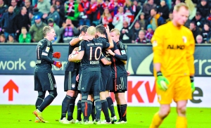今年4月,奥格斯堡曾以1比0击败拜仁,终结了正式比赛53年不胜拜仁的纪录,也是拜仁2012年4月以来42个德甲客场唯一败绩(34胜7平)。本赛季前14轮奥格斯堡拿到24分,创造本队德甲最佳开局,首次排名德甲第3位,近4轮和近5个主场全胜,也都创下本队德甲纪录。不过,他们在强大的拜仁面前还是不堪一击,前18脚射门未果的拜仁在下半场14分钟内连下四城,罗本“梅开二度”,代表拜仁第183场正式比赛取得99球,莱万多夫斯基和贝纳蒂亚各下一城,里贝里和斯魏因施泰格贡献助攻,获胜的拜仁近13轮仅有1个失球。