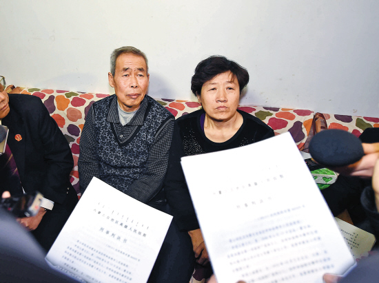 法官向呼格吉勒图的父母李三仁、尚爱云送达再审法律文书 新华社发