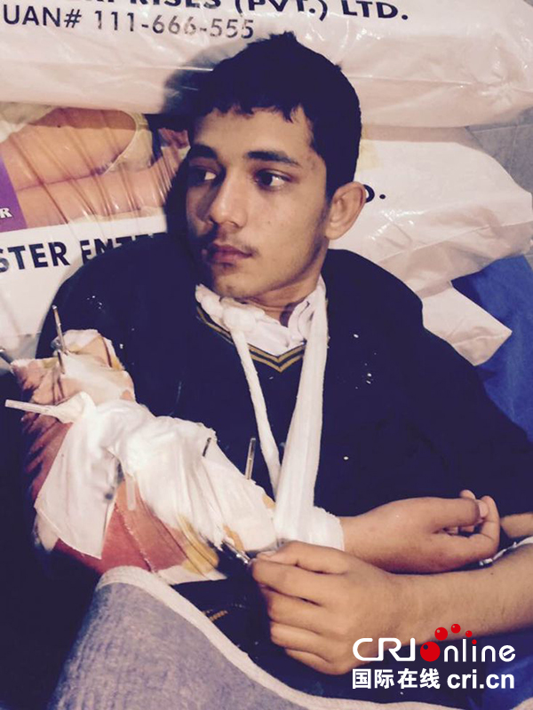 名叫哈里斯的八年级学生侥幸逃生,塔利班武装分子的子弹让他的右手手臂骨折