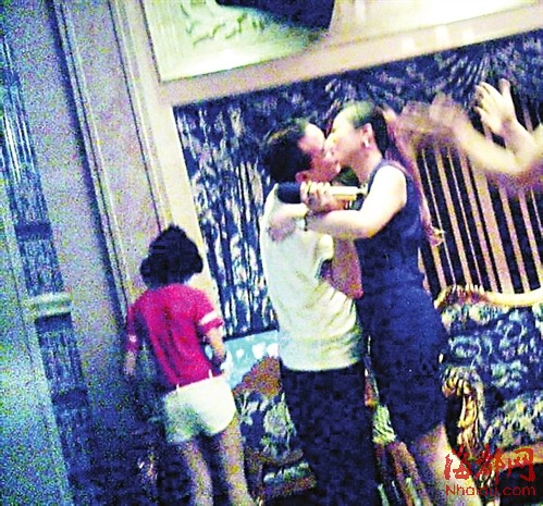 记者从帖文中的照片看到,拍摄地点疑似某夜总会包厢,主人公是同一名中年男子,男子有时手握麦克风,和年轻女子搂抱、亲吻;有时和女子喝交杯酒,甚至在摸女子的胸,尺度较大。