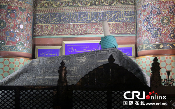 梅乌拉那1273年12月17日逝世,安葬在土耳其中部科尼亚城的梅乌拉那博物馆中。这座建筑曾是清真寺和信徒“旋转苦修者”的住所。远观这座清真寺,可以看到一座绿色的高耸塔尖,气势非凡。清真寺圆顶下方的大殿中,安放着梅乌拉那和他儿子以及几位重要信徒的石棺。石棺上都摆放着大头巾,这是精神权利的象征。