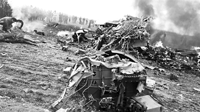 一位网友在微博上贴出了事故现场图,并称:为了让失控的飞机掉落无人区,两位飞行员错过了跳伞时间,壮烈牺牲。飞机尾部掉在村子里,机身落在了无人区。综合研判,这是一架刚刚出厂不久、正处于即将交付空军前试飞状态的歼轰-7A。
