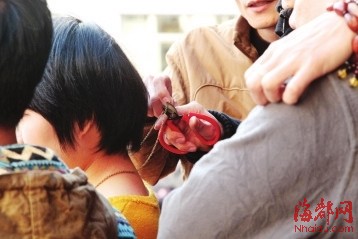“使用剪刀扒窃,一般需要四五个人配合,多选择乘客挤公交时,戴贵重项链和手链的候车人易成目标。”吴明文说,扒手在乘客上车“抢门”时,多人一起挤在乘客身边,一人在一侧以拍肩膀等方法转移乘客注意力,第二个人趁机用手将乘客的项链拎起,第三个人用小头剪刀迅速剪断项链,并由同伙快速扯走项链。
